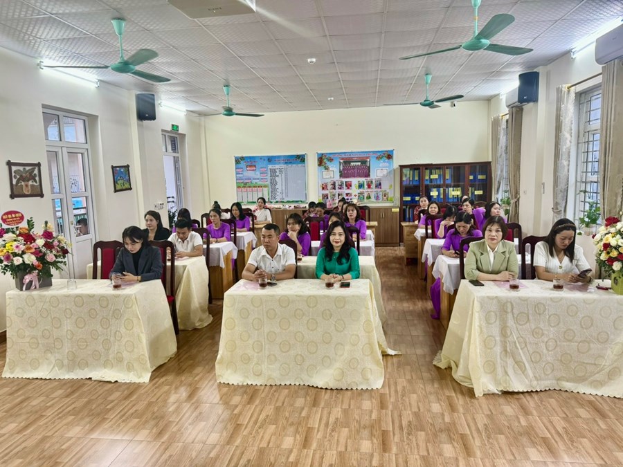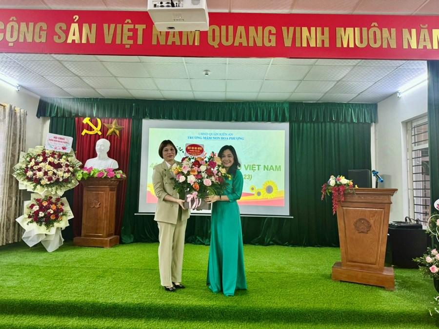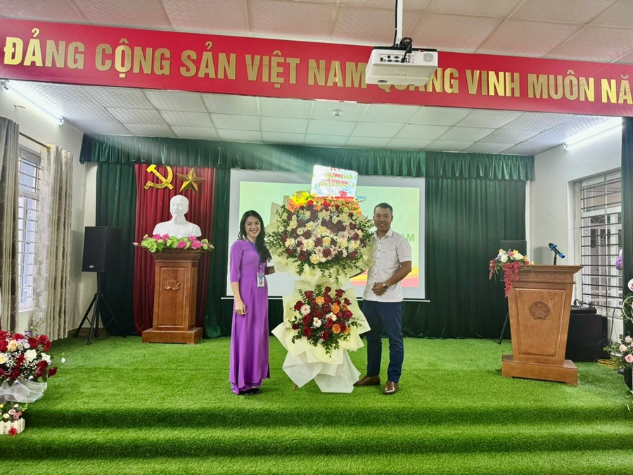 Lãnh đạo Đảng ủy phường Văn Đẩu tặng hoa chúc mừng nhà trường