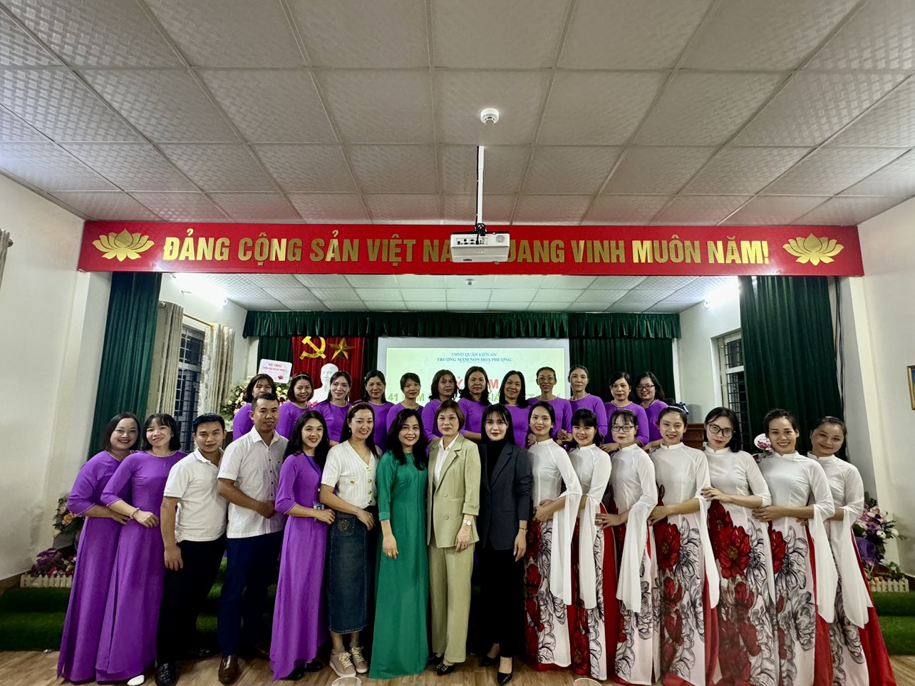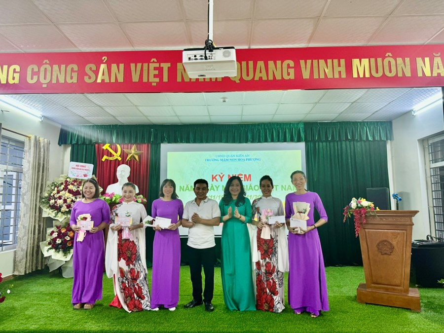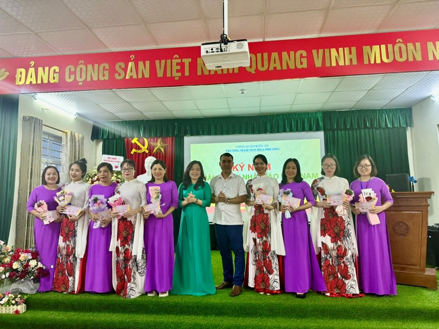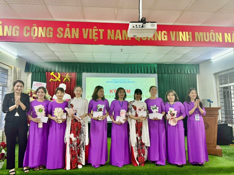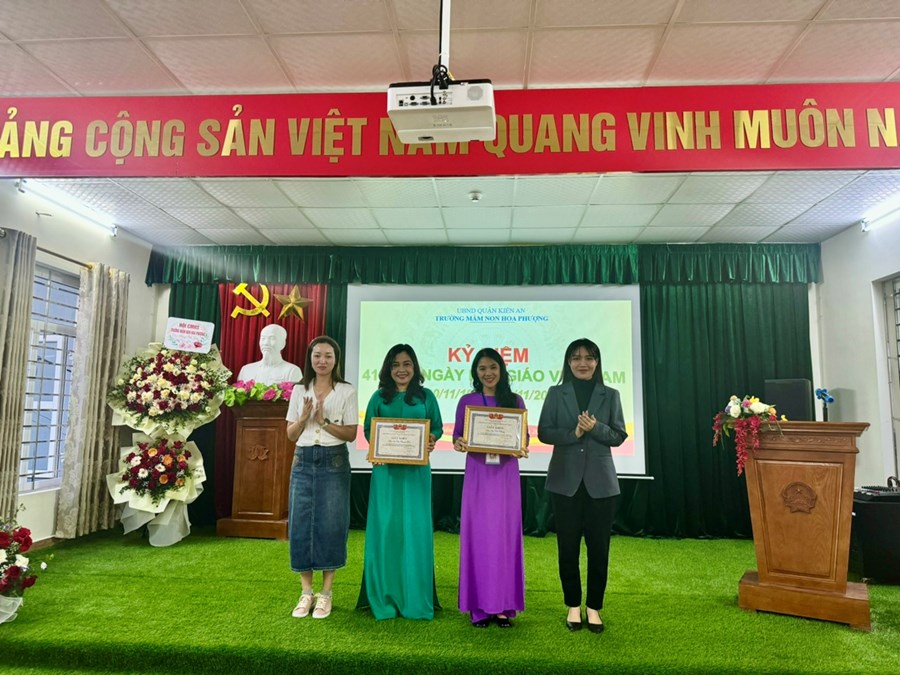 Lãnh đạo phường Văn Đẩu chúc mừng Các cô giáo được tặng Giấy khen của Giám đốc Sở GD&ĐT Hải Phòng